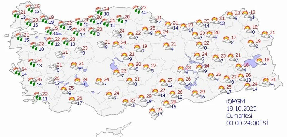 Meteoroloji Genel Müdürlüğü (MGM) verilerine göre, bugün İstanbul, İzmir, Muğla, Aydın, Manisa, Balıkesir, Çanakkale, Bursa, Yalova, Kocaeli, Tekirdağ, Edirne, Kırklareli, Bilecik, Sakarya, Bolu, Düzce, Karabük, Bartın, Zonguldak ve Sinop’ta sağanak yağış bekleniyor.