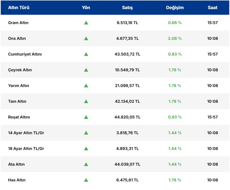 • Gram altın: Gün içinde 6.375–6.526 lira aralığında hareket etti; şu sıralar 6.483 liradan alıcı buluyor.