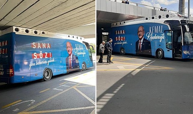 CHP’nin Ankara’da seçim çalışmalarında kullandığı otobüsün üst kısmı, Çankaya ilçesinde bulunan Sıhhiye Köprüsü’ne sıkıştı. Otobüs, köprüde bir süre mahsur kaldı. LASTİKLERİ İNDİRİLEREK KÖPRÜDEN KURTARILDI Otobüs, lastiklerinin havasının indirilmesiyle sıkıştığı yerden 5 dakika sonra kurtarıldı. Trafik bir süre sonra normal seyrine döndü.