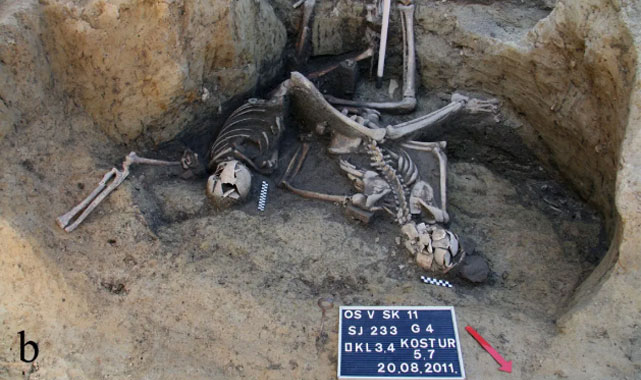 “Yedi tamamen korunmuş iskeleti içeren bu toplu mezar, Roma dönemi Mursa şehrinde keşfedildi. Bu, oldukça sıra dışı bir arkeolojik buluntu.”