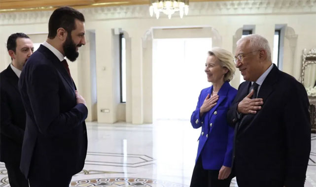 Suriye devlet medyasına dayandırılan haberlere göre, Avrupa Komisyonu Başkanı Ursula von der Leyen Şam’a giderek Cumhurbaşkanı Şara ile bir görüşme gerçekleştirdi. Ziyaret, AB cephesinden Suriye’ye yönelik en üst düzey temaslardan biri olarak değerlendiriliyor. Görüşmeye Avrupa Konseyi Başkanı Antonio Costa da katıldı.