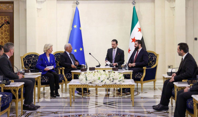 Suriye devlet medyasına dayandırılan haberlere göre, Avrupa Komisyonu Başkanı Ursula von der Leyen Şam’a giderek Cumhurbaşkanı Şara ile bir görüşme gerçekleştirdi. Ziyaret, AB cephesinden Suriye’ye yönelik en üst düzey temaslardan biri olarak değerlendiriliyor. Görüşmeye Avrupa Konseyi Başkanı Antonio Costa da katıldı.