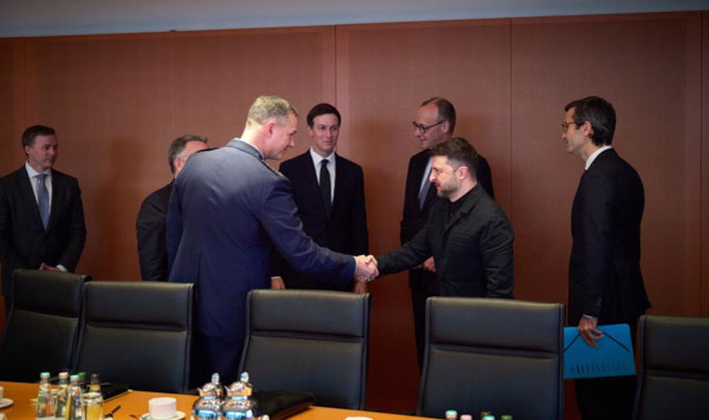 Almanya Başbakanı Friedrich Merz, Ukrayna Devlet Başkanı Vladimir Zelenskiy liderliğindeki müzakere heyeti ile ABD Başkanı Donald Trump’ın Orta Doğu Özel Temsilcisi Steve Witkoff ve Trump’ın damadı-danışmanı Jared Kushner’i başkent Berlin’de ağırladı. Taraflar, Ukrayna’daki savaşın sona erdirilmesine yönelik müzakereler kapsamında masaya oturdu.