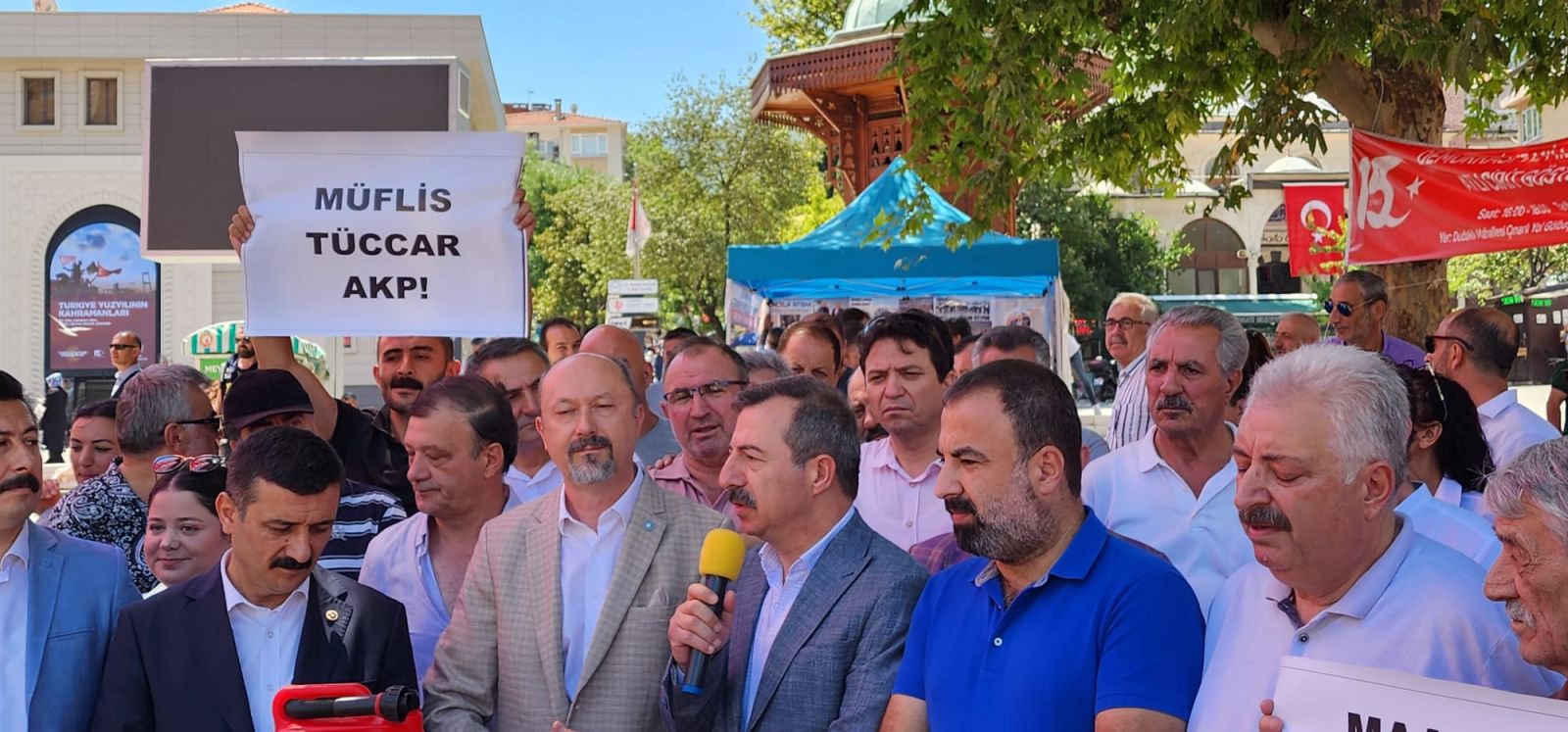 -İYİ Parti’nin ülke genelinde gerçekleştirdiği eş zamanlı zam protestosuna Bursa İl Teşkilatı da Şehreküstü Meyanı’nda yaptığı benzin bidonlu eylemle katıldı. Polis, benzin bidonlarının AK Parti binasına bırakılmak istenmesine izin verilmeyince büyük arbede yaşandı. Yaşanan arbedede İYİ Parti Milletvekilleri Selçuk Türkoğlu ve Hasan Toktaş polis tarafından tartaklanırken, Parti yöneticilerinden Şaban Aksoy başından yaralandı. Milletvekilleri Hasan Toktaş ve Selçuk Türkoğlu, emniyet güçlerinin müdahalesini kınarlarken, “Vatandaşın demokratik protesto hakkının engellenmesi kabul edilemez. Kaldı ki biz milletvekili sıfatımızla orada zam protestosuna destek vermek amaçlı bulunuyoruz. Elimizdekileri bomba değil, içi boş benzin bidonu ve bunu polis arkadaşlar biliyor. Ama emri kimin verdiğini biliyoruz. Sayın Vali’ye buradan sesleniyoruz. Devlet yalakalığı kabul etmez ve hiç bir üst düzey devlet adamına da iktidara yalakalık yakışmaz. Bu iktidarın beceriksiz ve insafsız yönetiminden kaynaklanan zam politikasına karşı direnmeye devam edeceğiz” şeklinde konuştular.