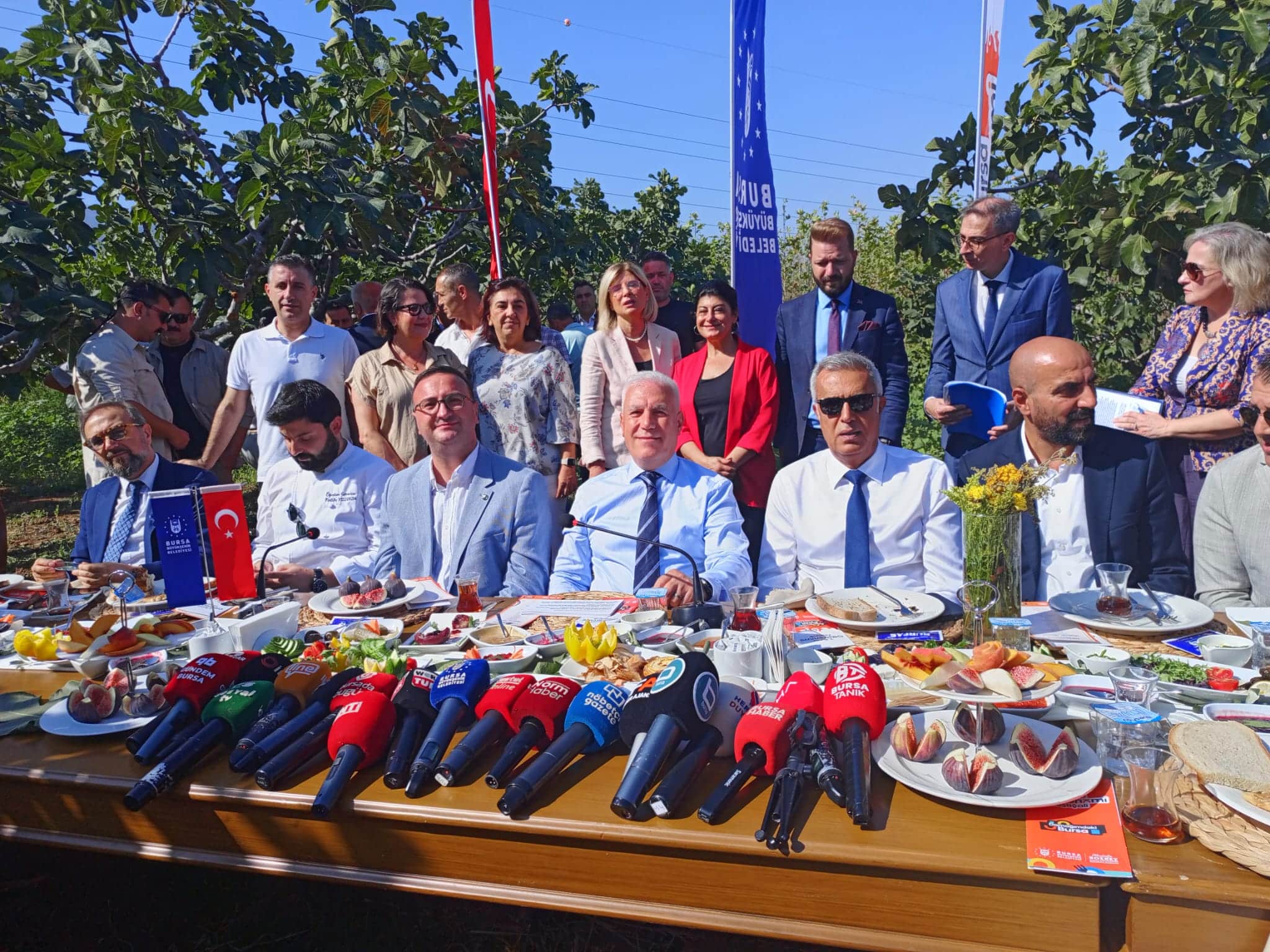 Bursa Büyükşehir Belediye Başkanı Mustafa Bozbey: “Burada buluşmamızın amacı tarihimizden bizlere miras kalan geleneksel mutfak kültürümüzü yaşatmak bu kültürü de geleceğimiz olan gençlerimize aktarmaktır. Tarihimiz tarımımız ve mutfağımız adeta iç içe geçmiş bir zincirin halkaları gibi bugüne kadar uzanmıştır. Bizler Bursa büyükşehir belediyesi olarak güçlendirecek projeler üretmek için de çalışmaya devam ediyoruz. Bugün Bursa’mızın coğrafi işaretli çok özel bir ürününün Bursa kara incirinin yetiştiği özel bir alandayız, özel bir bölgedeyiz ve hatta özel bir tarladayız. Etrafımızda bursa’nın siyahı hepimizi kucaklıyor. Kısa bir süre önce Bursa Siyahının Avrupa Birliği tarafından da coğrafi işaret olarak tescillendiğini büyük bir mutluluk ve gururla öğrendik. Gecikmiş de olsa bu tescili almamız gerçekten son derece önemli ve bu konuda dünyada 3 ürüne yükselmiş durumdayız. Bursa’nın siyahı, deveci armudu, gemlik zeytini, müşküle üzümü gibi dünyada ün salmış ülkemiz bütçesine önemli döviz girdisi sağlayan meyvelerimiz Bursa’mızın tarımsal zenginliğinin de önemli birer simgesidir. Ancak çiftçimizin feryadını duymazdan gelip sizlere pembe bir tablo çizmeyeceğim. Hemen harekete geçip tarımı çiftçi için tatmin edici bir hale getiremezsek bugün keyfine varacağımız sofra her sene biraz daha ve çok daha fakirleşecektir. Atalarımızın emek emek işledikleri tohumlarla bize miras kalan bu tarımsal zenginliğimiz Bursa’yı gastronomide bu kadar öne çıkaran bir konudur. Bu zenginliği koruyacak olan da yine çiftçimizdir. Çiftimize verilen desteklerle ancak mümkündür. Köylü milletin efendisidir söylemi gerçekten bizim için son derece önemli. Bunu lafta bırakmayan ulu önder Mustafa Kemal Atatürk’ün izinde bu sofranın zenginliğini devam ettirmek için elimizden geleni hiç kuşkusuz yapacağız ve çiftçimize de olağanüstü destekleri vermeye devam edeceğiz. Çiftçimize desteğin elbette ki kolay olmadığını biliyoruz. Görmüş olduğunuz Bursa Gastronomi sofrası bu sorunun önemli bir kısmının da aslında cevabını oluşturmakta. Bursa’ya ait arkasında bin yıllar süren bir üretim geleneğinin gücü olan bursa’mızın korunan toprağının ürünleri bunlar binlerce yıllık kültürel mirasta taçlanan bu ürünlerin ulusal ve uluslararası piyasalarda hak ettikleri değeri bulmaları için de hep beraber çalışma sorumluluğunu duyuyoruz. Tarımsal üretimi araştırma destekleme ve eğitim merkezimiz kırsal hizmetler daire başkanlığımız BUSKİ iştiraklerimizden Tarım Peyzaj A.Ş , BESAŞ ve Bursa hayvancılık geliştirme birliği ile birlikte Bursa tarımının sürdürülebilir bir biçimde yapılması için tüm gücümüzde ortaklaştırarak destek veriyoruz.