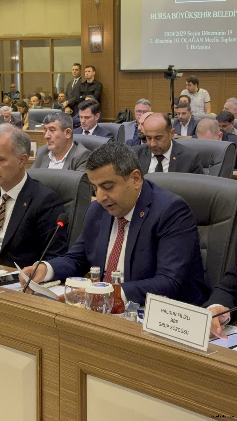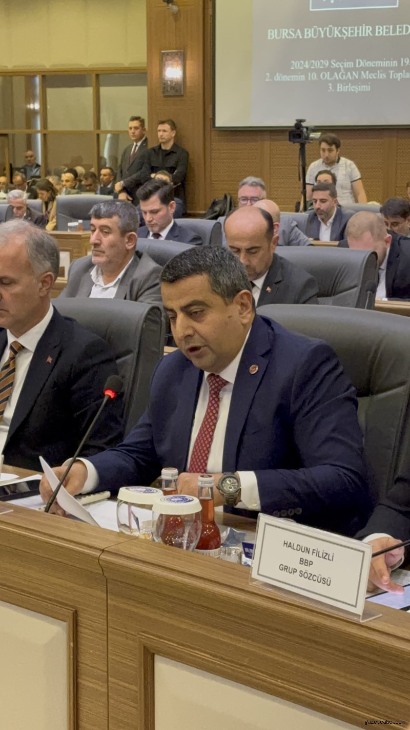 Sayın Başkan, değerli meclis üyeleri; öncelikle İnsan Kaynakları ve Eğitim Daire Başkanlığı bütçesinin 2025 yılına göre %70 oranında artırıldığını görüyoruz. Bu derece yüksek bir artışın makul bir açıklaması bulunmamaktadır. Personel yapısında veya hizmet sayısında dramatik bir değişiklik yokken bu artış, mali disiplin açısından uygun değildir. Artış oranı, personel giderlerinin kontrolsüz bir şekilde büyüdüğünü ve bütçe dengelerinin gözetilmediğini göstermektedir. Öte yandan, Bursa’nın en büyük ve kronik sorunlarından biri olan ulaşım konusunda 2026 yılı bütçesinde %37 oranında azaltmaya gidilmesi kabul edilemez. Ulaşım krizinin derinleştiği, toplu taşıma maliyetlerinin arttığı, raylı sistem yatırımlarının yıllardır tamamlanmayı beklediği bu şehirde ulaşım bütçesinin düşürülmesi ciddi bir planlama hatasıdır. Yeni kurulan Raylı Sistem Daire Başkanlığı’nın bütçesi bile eklenmiş olsa dahi toplam ulaşım bütçesi, 2025 yılı bütçesinin altında kalmaktadır. Bununla birlikte, Özel Kalem Müdürlüğü bütçesinin 2026 yılında %124 gibi olağanüstü bir oranda artırılması, kamu kaynaklarının önceliklendirilmesine aykırıdır. Şehrin altyapı ihtiyaçları açıkça ortadayken, sosyal desteklere daha fazla ihtiyaç duyulurken ve ulaşım yatırımları kaynak beklerken Özel Kalem bütçesinin iki katından fazla artırılması kabul edilebilir değildir.” dedi.