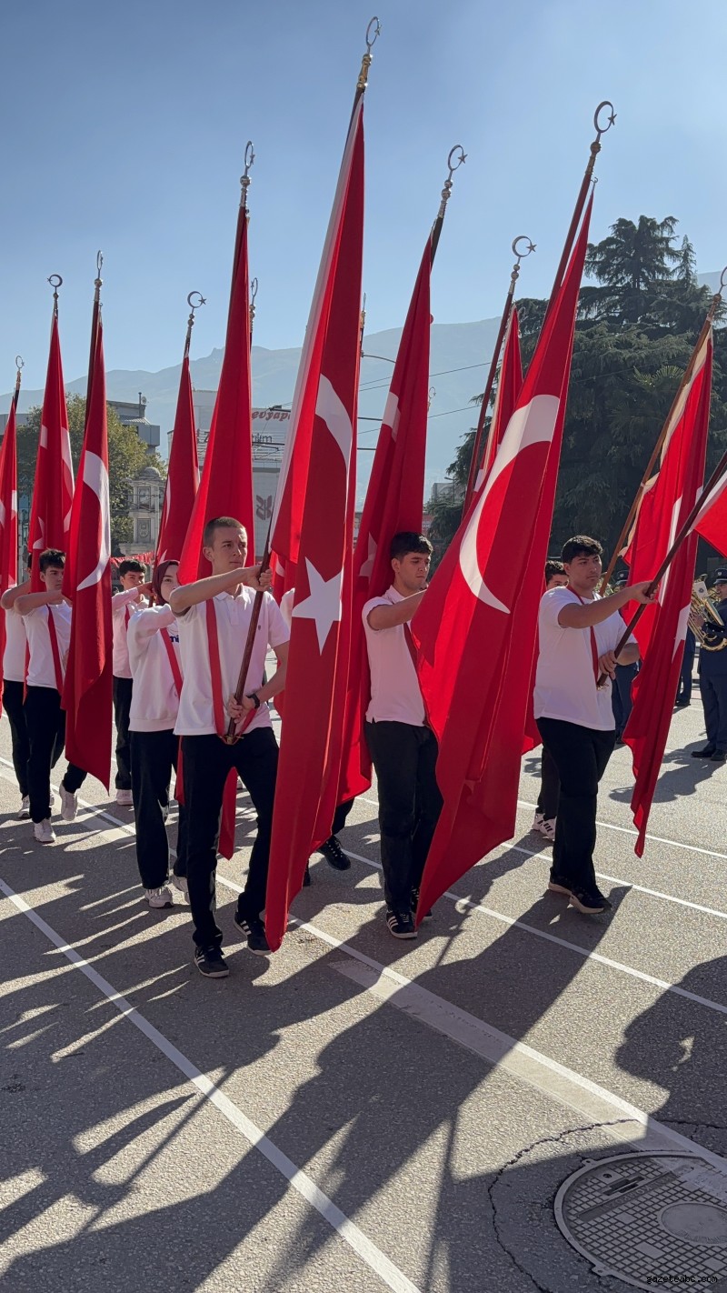 Bursa Valisi Erol Ayyıldız’ın konuşması ve şiir seslendirmesi sonrasında Cumhuriyet Bayramı kutlamaları gerçekleştirildi.