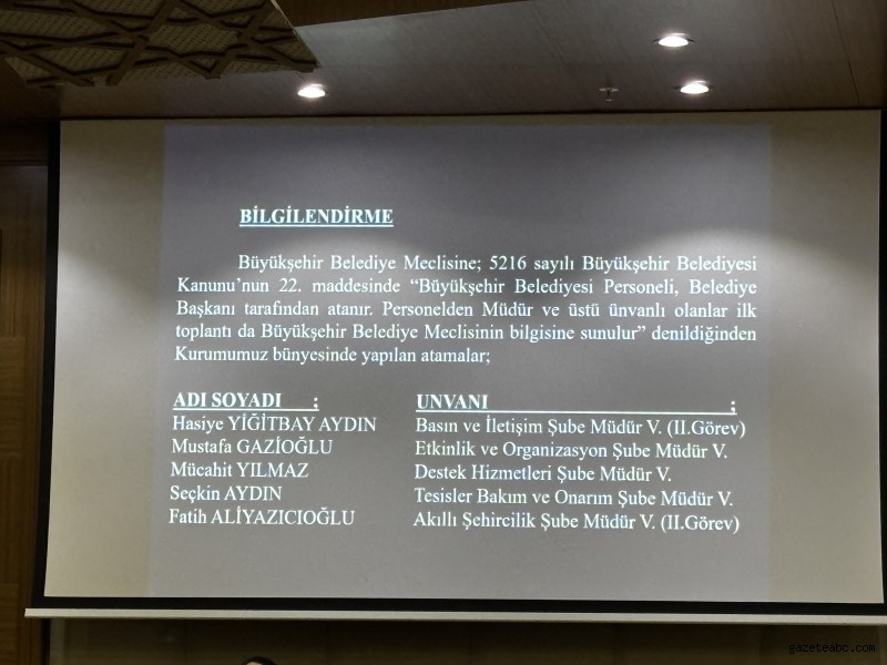 Gazeteabc/ Haber: Adiviye ElbaşBursa Büyükşehir Belediyesi tarafından 2024-2029 seçim dönemimin 21. 3. dönemin 1. olağan meclis toplantısının 1. birleşimi gerçekleştiridi.
