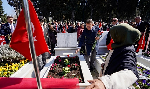 İstanbul Valisi Davut Gül, 1. Ordu ve İstanbul Garnizon Komutanı Orgeneral Ali Sivri ve İBB Başkanı Ekrem İmamoğlu, şehitlerin aziz hatırası için dua edip, Çanakkale Anıtı’na çelenk bıraktı.EDİRNEKAPI / İSTANBUL18 Mart Çanakkale Zaferi’nin 109’uncu yıldönümü nedeniyle Edirnekapı Şehitliği’nde anma töreni düzenlendi. İstanbul Valisi Davut Gül, 1. Ordu ve İstanbul Garnizon Komutanı Orgeneral Ali Sivri, İstanbul Büyükşehir Belediye (İBB) Başkanı Ekrem İmamoğlu ve CHP İstanbul İl Başkanı Özgür Çelik ile Türkiye Harp Malulü Gaziler Şehit Dul ve Yetimleri Derneği İstanbul Şubesi Başkanı Önder Çelik, Edirnekapı Şehitliği’ndeki Çanakkale Anıtı’na çelenk bıraktı. Şehit yakınları ve gazilerin de katıldığı tören, saygı duruşunda bulunulması, saygı atışı yapılması ve İstiklal Marşı’nın okunmasıyla devam etti. Şehit yakınları ve gazilerin de katıldığı törende; Çelik bir konuşma yaparken, törenden erken ayrılan Vali Gül’e vekaleten de İstanbul Vali Yardımcısı Mehmet Sülün, Şehitlik Defteri’ne duygularını yazdı. Anıt önündeki anma, İstanbul İl Müftüsü Prof. Dr. Safi Arpaguş’un okuduğu dualarla sona erdi. Resmi anmaya katılan protokol, törenin ardından Edirnekapı Şehitliği’ndeki şehit kabirlerini ziyaret etti ve şehit yakınlarının acılarına ortak oldu.