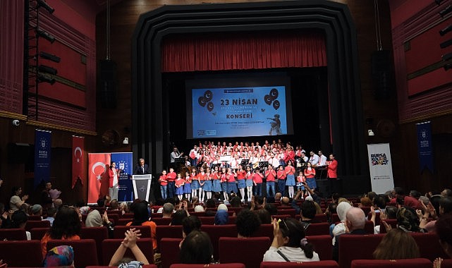 Bursa Büyükşehir Belediyesi Orkestra Şube Müdürlüğü Türk Sanat Müziği ve Türk Halk Müziği Bölümü Çocuk Korosu, 23 Nisan Ulusal Egemenlik ve Çocuk Bayramı’nda sahne aldı. Tayyare Kültür Merkezi’nde gerçekleşen konserde çocuklar geceye birbirinden güzel şarkı ve türkülerle imza atarken, izleyicilerden bol alkış alarak hafızalara kazınan bir bayram yaşadılar.Finalde ise Türk Sanat Müziği Bölümü Çocuk Korosu Şefi Samiye Berkmen ve Türk Halk Müziği Bölümü Çocuk Korosu Şefi Semih Ersoy’a Bursa Büyükşehir Belediyesi Genel Sekreter Yardımcısı Mehmet Yıldız çiçek takdim etti.