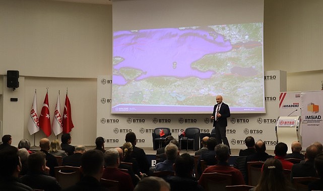 Depreme dayanıklı yapılaşmanın yeni nesil çözümlerinden biri olan sismik izolasyonunun tüm yönleriyle ele alındığı seminer, BTSO Hizmet Binası’nda gerçekleştirildi. Programda konuşan İMSİAD Başkanı Şeref Demir, Türkiye’de yaklaşık 6.8 milyon riskli yapının ve ülke nüfusunun yüzde 75’inin deprem bölgesinde yaşadığını hatırlatarak, “Deprem gerçeği ile yüzleşmek zorundayız. Kahramanmaraş merkezli yaşadığımız deprem felaketlerinin 1. yılında depreme dayanıklı konutları yapma gerçekliğini maalesef acı bir şekilde bir kez daha tecrübe ettik” dedi.