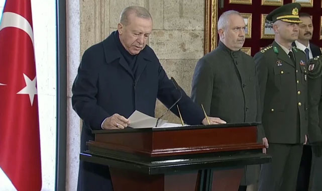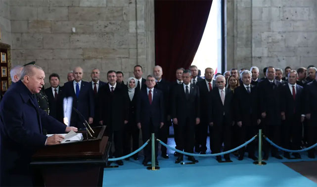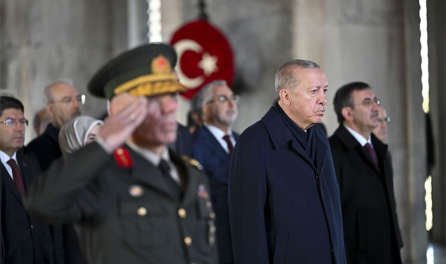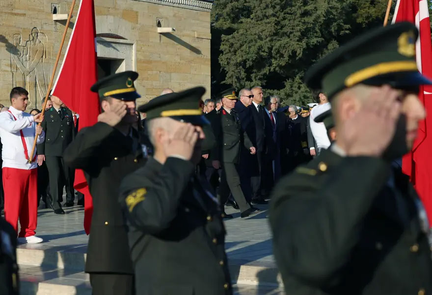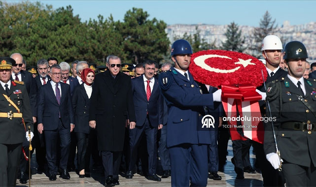 Anıtkabir’deki tören, saat 08.50’de devlet erkanının Aslanlı Yol’dan yürüyüşüyle başladı. Cumhurbaşkanı Recep Tayyip Erdoğan, kırmızı beyaz karanfillerden oluşan ay-yıldızlı çelengi Atatürk’ün mozolesine bıraktı.