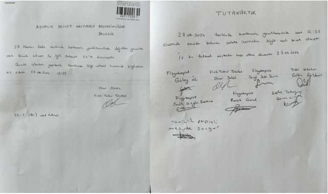 Ayvalık Devlet Hastanesi’nde personeline verilen yemekte canlı bir böcek bulundu. Skandal olay, hastane doktorları tarafından fotoğraflanarak tutanak altına alındı. Tutanakta, olayı doğrulayan 7 doktor ve sağlık personelinin imzası bulunuyor.