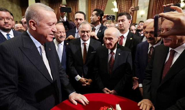 Resepsiyona Cumhurbaşkanı Recep Tayyip Erdoğan, MHP Genel Başkanı Devlet Bahçeli, DEM Parti Eş Genel Başkanları Tülay Hatimoğulları ve Tuncer Bakırhan ile bakanlar katıldı. Meclis’te grubu bulunan tüm siyasi partilerin liderleri de resepsiyonda yer aldı.