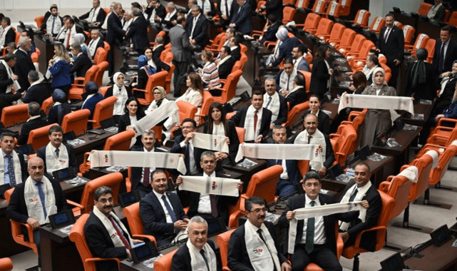 Vekiller için Genel Kurul’daki koltuklara, TBMM Başkanlığı tarafından özel olarak hazırlatılan ve üzerinde Filistin ve Türkiye bayraklarının bulunduğu atkılar yerleştirildi. Öldürülen Hamas lideri İsmail Haniye’nin fotoğrafı, kırmızı karanfilli bir çerçeve içinde AK Parti grubunun ön sırasına konuldu. Saadet Partisi (SP) vekillerinin oturduğu sıralarda ise Haniye ile Necmettin Erbakan’ın fotoğrafları yer aldı. Ayrıca, bazı AK Partili vekiller İsrail’in Gazze saldırılarını kınayan pankartlar açtı.