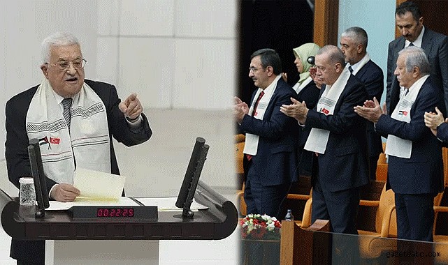 İsrail Başbakanı Netanyahu’nun ABD Kongresi’nde ayakta alkışlanmasının ardından, TBMM Başkanvekili Bekir Bozdağ eşliğinde salona giren Filistin Devlet Başkanı Abbas, tüm milletvekilleri tarafından 1 dakika 7 saniye boyunca ayakta alkışlandı. 45 dakika süren konuşması sırasında Abbas’ın sözleri, vekillerin çoğunun ayağa kalkarak yaptığı alkışlarla toplam 29 kez kesildi. Cumhurbaşkanı Erdoğan, Abbas’ın salona girişinde ve konuşmasını bitirdiğinde vekillerle birlikte ayakta alkışlara katıldı. Erdoğan, Abbas’ın “Benim hayatım Gazze’deki bir çocuğun hayatından daha değerli değildir” ve “Kudüs’e, ebedi başkentimize de gideceğim” ifadeleri üzerine de ayağa kalkarak alkışladı. Abbas’ın hitabının ardından Erdoğan, TBMM Başkanı Kurtulmuş ve Abbas, Bahçeli’nin de aralarında bulunduğu bazı milletvekilleriyle kısa bir görüşme gerçekleştirdi.