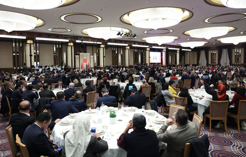 Cumhurbaşkanı Recep Tayyip Erdoğan, Beştepe Millet Sergi Salonu’nda düzenlenen “Emek Sofrası Buluşması” iftar programına katılarak bir konuşma yaptı. Herkesin mübarek Ramazan ayını tebrik eden Cumhurbaşkanı Erdoğan, “İftarını bizimle açan siz emekçi kardeşlerime şükranlarımı sunuyorum. Bizleri bir araya getiren Çalışma ve Sosyal Güvenlik Bakanlığımıza, Sayın Bakan’ımıza ve ekibine teşekkür ediyorum” diye konuştu. Cumhurbaşkanı Erdoğan, Müslümanlar olarak bir taraftan 11 ayın sultanı ramazana erişmenin coşkusunu yaşarken diğer taraftan Gazze’de, Sudan’da ve daha birçok yerde sıkıntı çeken, eziyet gören, bir kuru ekmek, bir tas çorbayla iftar yapmak zorunda kalanların sızısını yüreklerinde hissettiklerini ifade etti.
