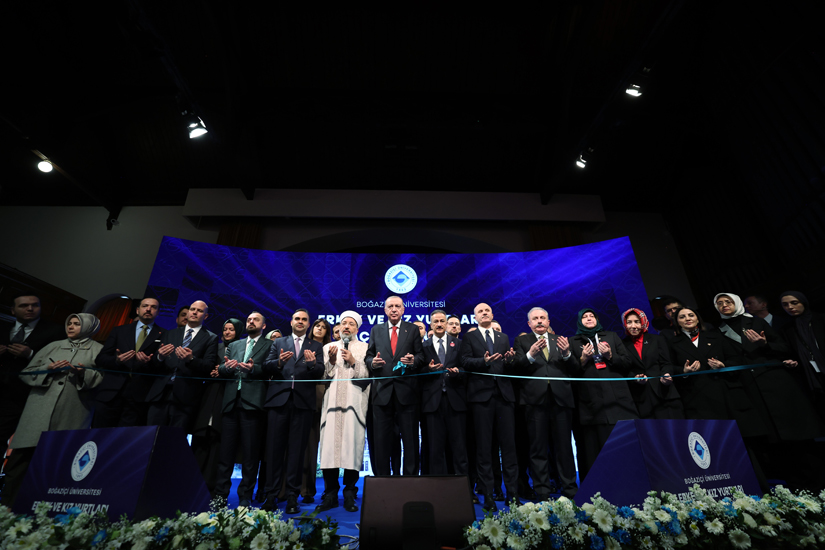 Diyanet İşleri Başkanı Safi Arpaguş, kurdele kesimi öncesinde programda dua etti. Duanın ardından konuşan Cumhurbaşkanı Erdoğan, “Burası 400 kişilik bir salon. Rektörümüze de söyledik. Valimize de gerekli talimatı verdik. Büyükçe bir konferans salonunu Boğaziçi Üniversitemize yakışır şekilde, bir seneyi geçmeyecek şekilde yapalım, bitirelim. Valimizden de sözünü aldık. Boğaziçi Üniversitesinin para babaları da bayağı fazla zaten. Onların da destekleriyle inşallah süratle yeni konferans salonumuzu bitirelim ve Boğaziçi Üniversitemize inşallah teslim edelim” ifadelerini kullandı.