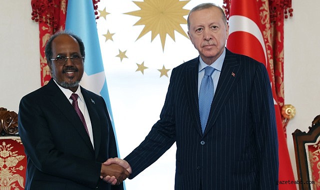 Cumhurbaşkanı Recep Tayyip Erdoğan, Türkiye’ye ziyarette bulunan Somali Cumhurbaşkanı Hasan Şeyh Mahmud ile Cumhurbaşkanlığı Dolmabahçe Ofisi’nde bir araya geldi. Cumhurbaşkanı Erdoğan, Somali Cumhurbaşkanı Mahmud ile görüştü.Cumhurbaşkanı Erdoğan, Somali Cumhurbaşkanı Mahmud’u, Cumhurbaşkanlığı Dolmabahçe Ofisi’nde resmî törenle karşıladı.Tören sonrası, Cumhurbaşkanı Erdoğan ile Somali Cumhurbaşkanı Mahmud ikili görüşmeye geçti. Mahmud ile başbaşa görüşmesi sonrasında heyetler arası çalışma yemeği ve akabinde Somali Cumhurbaşkanı Hasan Şeyh Mahmud ile Ortak Basın Toplantısı düzenlenmesi bekleniyor.