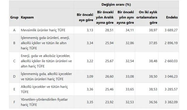 İşlenmemiş gıda ürünleri, enerji, alkollü içkiler, tütün ve altın hariç tutulan “çekirdek enflasyon” göstergesi de artışını sürdürdü. Buna göre: