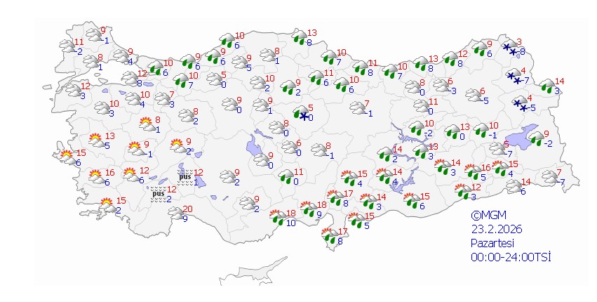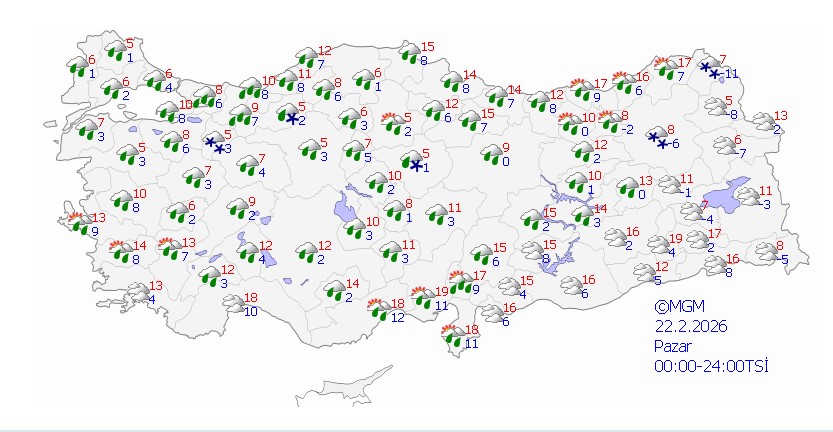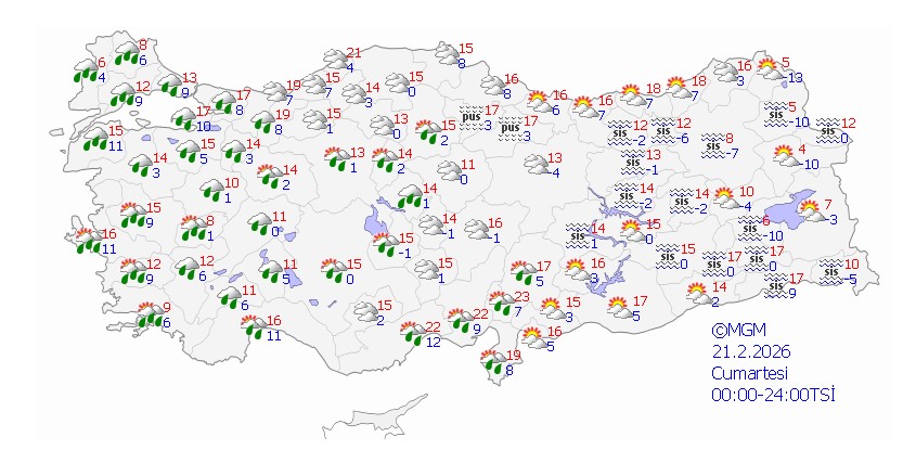 Bugün Doğu Anadolu’nun kuzeydoğusu ile Artvin, Bitlis ve Van çevrelerinde karla karışık yağmur ve kar bekleniyor. Kırklareli, Rize, Muş, Şırnak, Batman ve Siirt çevreleri ile Balıkesir’de ise sağanak yağış öngörülüyor.