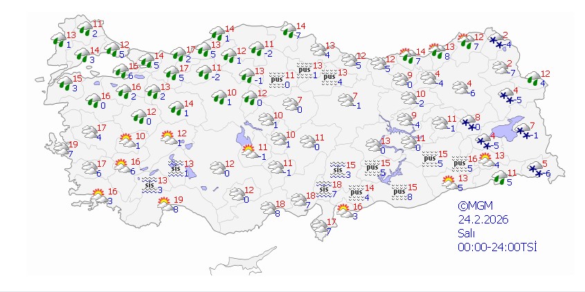 Bugün Doğu Anadolu’nun kuzeydoğusu ile Artvin, Bitlis ve Van çevrelerinde karla karışık yağmur ve kar bekleniyor. Kırklareli, Rize, Muş, Şırnak, Batman ve Siirt çevreleri ile Balıkesir’de ise sağanak yağış öngörülüyor.