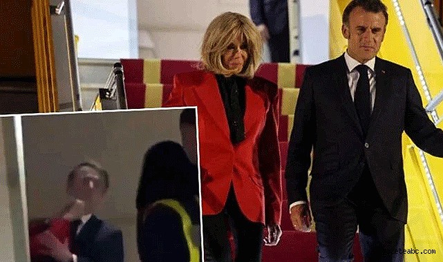 Associated Press tarafından yayımlanan ve dün akşam saatlerinde Hanoi’de kaydedilen görüntülerde, Cumhurbaşkanı Macron uçağın kapısından göründüğü anda arkasından eşi Brigitte Macron’un da yer aldığı kısa süreli bir hareketlilik yaşandı. Görüntülerde, Brigitte Macron’un eşinin yüzüne kısa süreli bir fiziksel müdahalede bulunduğu ve ardından onu ittiği görüldü.Cumhurbaşkanı Macron’un olay anında irkilmiş gibi göründüğü, ardından ise toparlanarak kalabalığa el salladığı kameralara yansıdı. Brigitte Macron’un yüzü ise kameraya yansımadı.