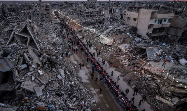 Eşi, çocukları ve annesi Türkiye’ye tahliye edilen Jadallah, Gazze’yi terk etmeyerek şehrin yıkımını belgelemeyi sürdürdü.