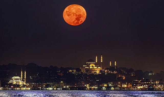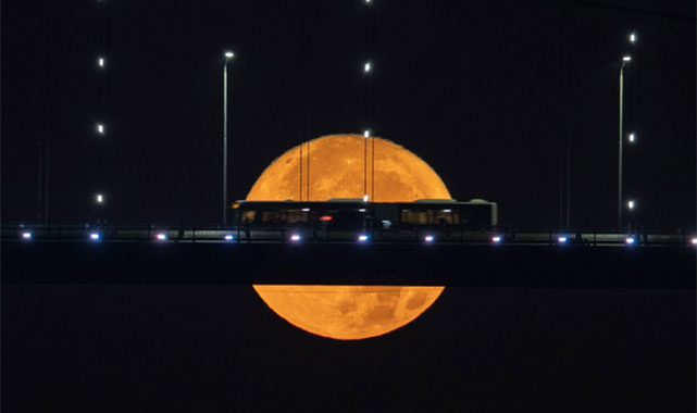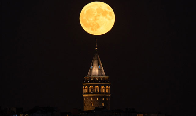 İstanbul’un simgeleri, büyüleyici bir doğa olayına sahne oldu. Akşam saatlerinde gökyüzünde beliren “Süper Mavi Dolunay”, Galata Kulesi, 15 Temmuz Şehitler Köprüsü ve Çamlıca Camii ile birleşerek adeta görsel bir senfoni yarattı. Kartpostalları aratmayan bu muhteşem manzara, havadan görüntülenerek ölümsüzleştirildi. Her zamankinden daha parlak ve etkileyici olan dolunay, İstanbul semalarını masalsı bir tabloya dönüştürdü, izleyenleri büyüledi.İşte nefes kesen o görüntüler: