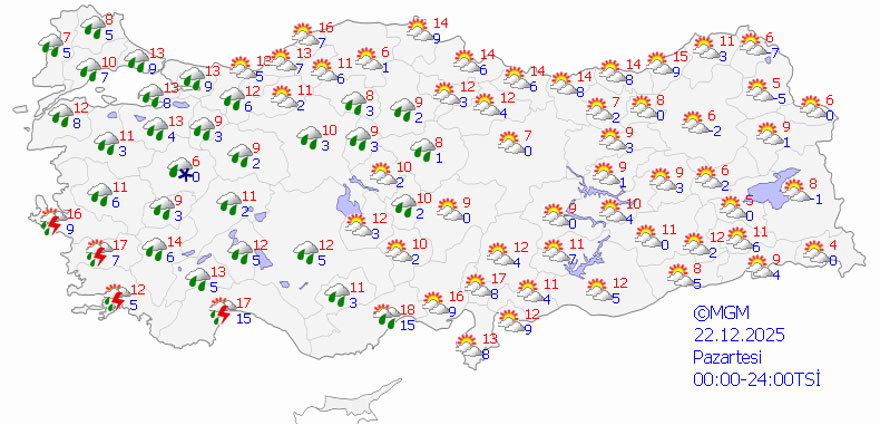 Hava sıcaklıklarının ülke genelinde mevsim normallerinin üzerinde seyretmesi bekleniyor. Ancak özellikle gece saatlerinde yurdun iç ve doğu kesimlerinde buzlanma ve don olaylarına karşı dikkatli olunması isteniyor.