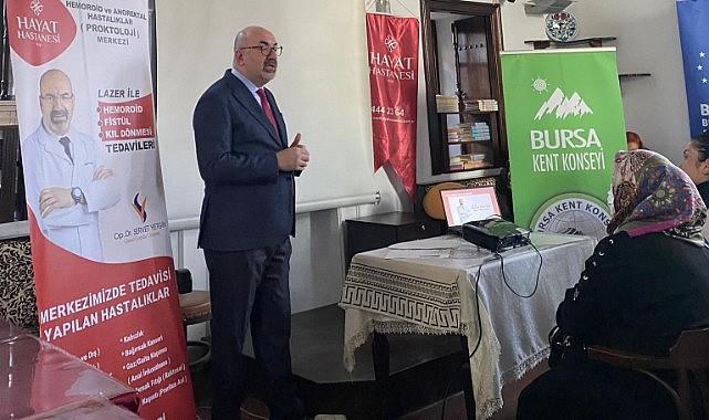 Katılımcıların sorularının cevaplandırılmasının ardından programın sonunda Bursa Kent Konseyi Kadın Meclisi Yönetimi tarafından Hayat Hastanesi Genel Cerrahi Uzmanı Op. Dr. Servet Yetgin’e teşekkür belgesi takdim edildi.