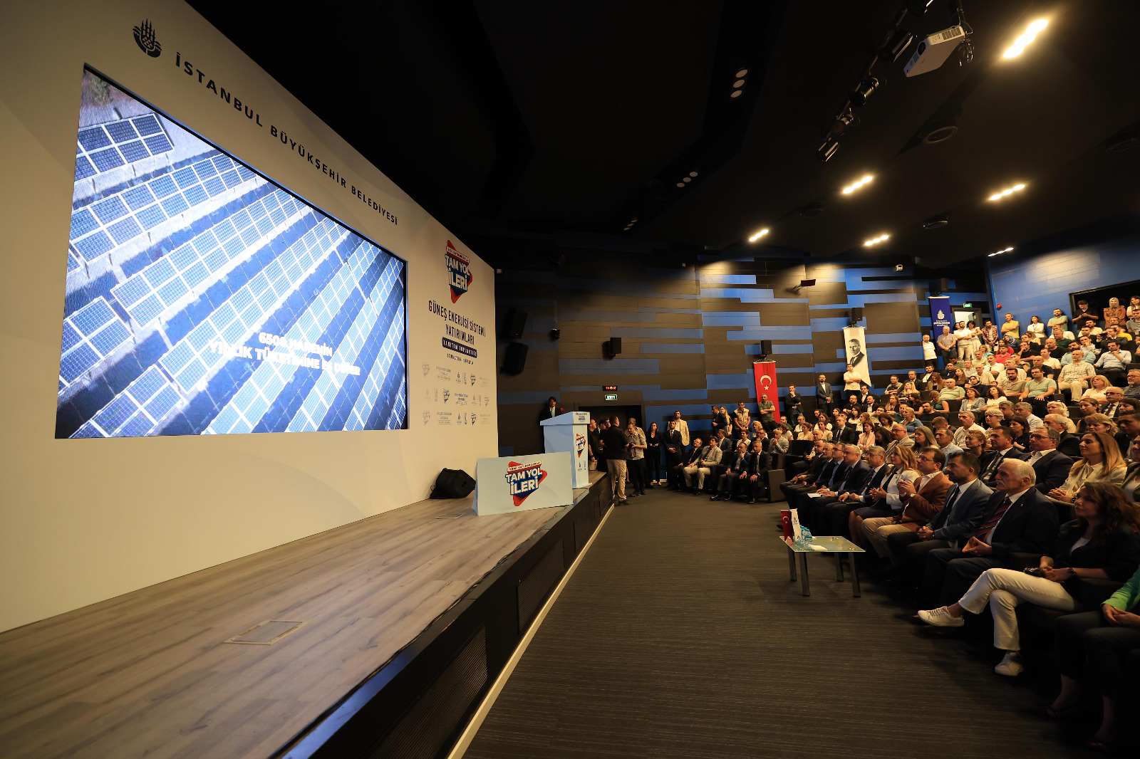 CUMHURBAŞKANI ERDOĞAN’A ÇAĞRI: “KÖMÜRCÜODA’YI İMZALAYIN”“Bu anlamda kapasiteleri arttırmak adına da yoğun bir çalışma içerisindeyiz. Çok yakınımızda, Odayeri’nde açtığımız bu tesisin bir benzerini de Kömürcüoda’da, Şile’de açmak için yoğun bir çalışma içerisindeyiz. Bu çalışmanın, yine Avrupa’nın bir başka büyük tesisini, en büyüklerinden birini yapmayla ilgili son aşamaya geldiğimizi ve uzun süredir yine Cumhurbaşkanlığı onayını, yatırım planına alınmasını beklediğimizin de altını çizmek istiyorum. Attığımız her milli adım, yani bu dediğimiz işler, kendi kaynağından enerji üreten, yine 1,5 milyona yakın insanın yaşadığı bir kentin enerjisini verebilecek güce sahip bir tesisin yapılması adına, uzun süredir beklememizin tek sebebi; bir mürekkep ve bir kalem. İmza atacak ve biz yol yürüyeceğiz. Bu anlamda Şile Kömürcüoda’da açmak istediğimiz atık yakma tesisinin, bir an önce Cumhurbaşkanlığı Yatırım Planı’na alınması konusunda da çağrımızı yapıyoruz. Fırsat bulduğumuz her alanda ve her ortamda bunları hatırlatacağımızı, böylesi bir milli yatırımın, milli bir meselenin hangi saiklerle engellendiği hususunun da sorusunu sorarak, her konuşmamın içine bunu katacağımı buradan belirtmek isterim.”“KULLANDIĞINIZ ENERJİ KAYNAKLARI ÇEVREYE ZARAR VERİYORSA, DOĞAYI KORUMA ŞANSIMIZ YOK”“Ne kadar çok yeşil olan üretirseniz üretin, eğer kullandığınız enerji kaynakları çevreye zarar veriyorsa, doğayı koruma şansımız yok. Ki bütün dünya, bu konuda inanılmaz adımlar atıyor ve atılımlar içerisinde. O nedenle en önemli hedeflerimizden birisi, enerjinin, özellikle yenilenebilir kaynaklardan üretilerek, İstanbul’a fayda sağlamasıdır. ‘Benim de en çok içimi ısıtan ve en çok hoşuma giden enerji kaynağı nedir’ derseniz; bu amaçla güneş enerjisinden maksimum fayda sağlamayı ve yararlanmayı çok önemsiyorum. İnanın bu konuda da seferber olmuş durumdayız. Belediyemizin tesislerinin kullandığı enerjiyi, güneş enerji santrallerinden sağlamak için bir atılım yürüttüğümüzün de altını çizeyim. Hedefimiz; inşallah 2029 yılına kadar, belediyemiz binalarında enerji ihtiyacının tamamını güneşten sağlayacak seviyeye gelerek, yüzde 100 çevre dostu bir kurum, çevre dostu binalara sahip bir kurum haline gelmek. Bu sayede, yıllık 148 bin ton karbondioksit salınımını da engellemiş olacağız.”“GÜNEŞ ENERJİ SANTRALLERİNİN POTANSİYELİ, 2019’DAN BUGÜNE TAM 6 KAT ARTMIŞ DURUMDA”“Bu hedef doğrultusunda bugün, belediyemizin Park Bahçeler Daire Başkanlığı ve İSKİ Genel Müdürlüğü tarafından yapımı tamamlanan güneş enerjisi santrallerinin de bir nevi açılışını yapmış olacağız. Yani bütüncül bir toplantı, bir kavram bütünlüğü içinde bu sürece nasıl baktığımızı sizlere anlatan. Ama aynı zamanda bir açılışla da bunu süsleyen bir paylaşımı yapıyoruz bugün. İSKİ’nin yaptığı çalışmalarla da mevcut İkitelli İçme Suyu Arıtma Tesisleri Güneş Enerjisi Santrali’ne ilaveten; Büyükçekmece, Kağıthane ve Şile İçme Suyu Arıtma Tesisleriyle; Kartal, Esenyalı, Dudullu, Bahçelievler, Mahmutbey gibi pek çok içme suyu terfi merkezinde ve çeşitli İSKİ binalarında yenilenebilir enerji kaynakları projelerini hayata geçiriyoruz. Bu sayede, İSKİ bünyesindeki güneş enerji santrallerinin potansiyeli, 2019’dan bugüne, tam 6 kat artmış durumda. Bu çok önemli bir atılımdır. Güncel bedeliyle 275 milyon lirayı bulan bu 14 tane güneş enerji santrali, ciddi bir güç kapasitesine de sahip, 9400 kilovat. Aynı zamanda bu santraller, 6 bin 650 hanenin de yıllık enerji ihtiyacını karşılayacak kapasiteye ulaşmış oluyor. Karbondioksit salınımını engellemiş oluyor. 138 bin ağacın doğaya kazandırılması anlamına geliyor. 4 bin 450 aracın trafikten çıkartılması anlamına geliyor.”“PARK BAHÇELER, 60 TESİSİ TAMAMLADI”“Bu yönüyle hareketimizin devam etmesini istiyorum. İSKİ kurumumuz, burada duracak değil. Genel Müdürümüzle de konuştuk. Bu atılım devam edecek. Özellikle Park Bahçeler Dairemiz bünyesinde, sadece 2 adet güneş santrali vardı 2019 yılında. Ama bu zaman dilimi içerisinde yaptığı yatırımla, 60 tesisin yapımını tamamlayarak, yani bulduğu her fırsatı değerlendirerek, ciddi bir yatırım yapmış bulunuyor. Bu anlamda kurulu bulundukları binalarda da yüzde 45’e yakın elektrik ihtiyacını karşılar halde. Özellikle Şile Spor Kompleksi, Tuzla Bahar Engelliler Merkezi, İBB Bakırköy ek hizmet binasından Cebeci Lojistik Merkezi’ne kadar, pek çok tesiste enerji santralleri yerini alıyor.”