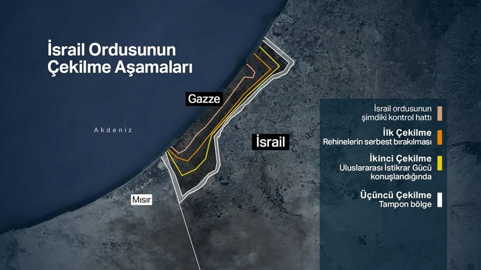 Trump’ın planının ilk aşaması tamamlandıktan sonra, Gazze’nin askeri altyapıdan arındırılması ve Hamas’ın silahsızlanması gibi zorlu konuların tartışılacağı yeni müzakereler başlayacak. Hamas, yalnızca bağımsız bir Filistin devleti kurulursa silahsızlanmayı kabul edeceğini daha önce açıklamıştı.Plan, Gazze’yi geçici olarak teknokratlardan oluşan bir komisyonun yönetmesini ve daha sonra Filistin Yönetimi’ne devretmeyi öngörüyor. Hamas’ın ise yönetimde rolü olmayacak.