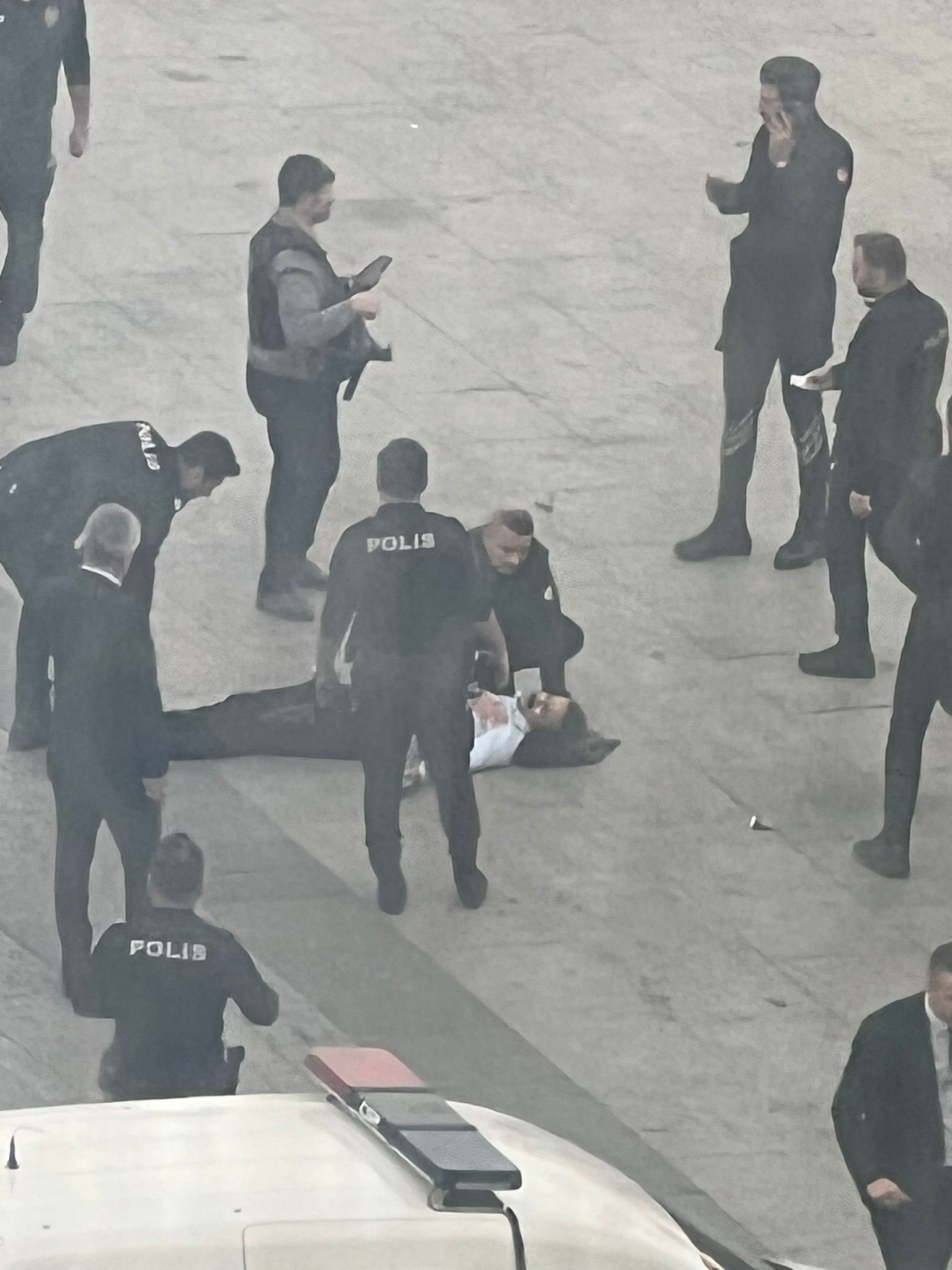 Polis ekiplerinin geniş güvenlik önlemleri aldığı bölgede, bir süre sonra şok edici bir gelişme yaşandı. Silahlı şahıs, bir anda silahı bacağına çevirerek ateş etti ve yaralanarak yere yığıldı.