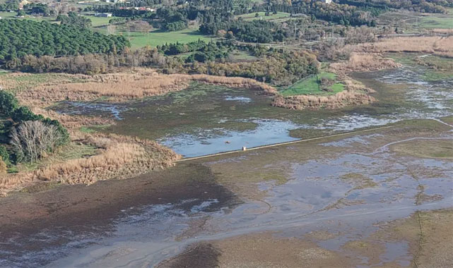 İstanbul’un en büyük barajlarından Terkos Barajı’nda doluluk oranı %19,01’e geriledi. Baraj havzasında suyla kaplı alanlar kururken, bazı tekneler demir attıkları noktada sudan onlarca metre uzakta, balçık çamur içinde kaldı.