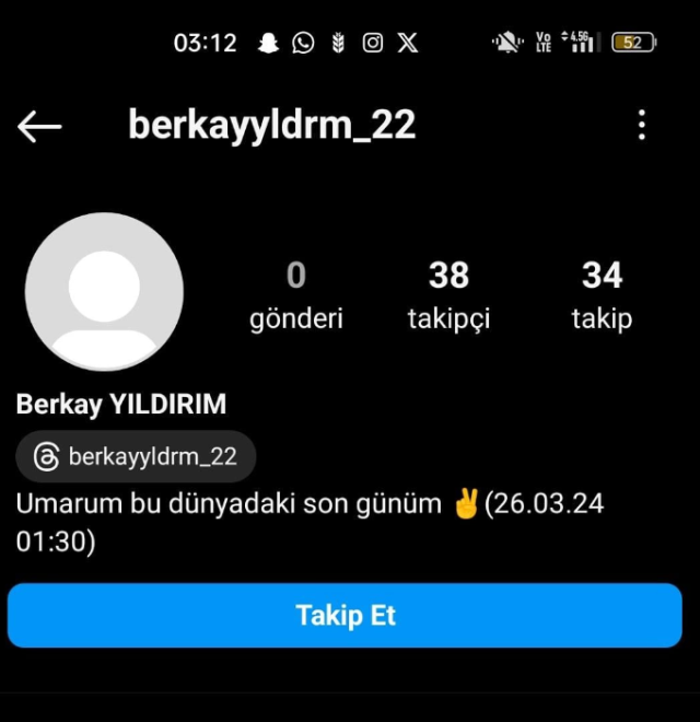 Safranbolu ilçesinde yer alan Kredi ve Yurtlar Kurumuna (KYK) bağlı İsmail Necati Efendi Erkek Öğrenci Yurdu’nda kalan ve Edebiyat Fakültesi’nde Sanat Tarihi bölümü öğrencisi olan B.Y., oda arkadaşlarının sahur yapmak için yemekhaneye gittiği sırada 3. kattan atladı.Çevredekilerin ihbarı üzerine olay yerine sevk edilen sağlık ekipleri 24 yaşındaki gencin hayatını kaybettiğini belirledi. Olaya ilişkin soruşturma başlatıldı.Öte yandan üniversite öğrencisinin, intihar öncesinde sosyal medya hesaplarından fotoğraflarını sildiği belirtildi. Ayrıca Yıldırım’ın, sosyal medya hesabındaki biyografisine, “Umarım bu dünyadaki son günüm (26.03.2024 01:30)” ifadelerini yazdığı da görüldü.