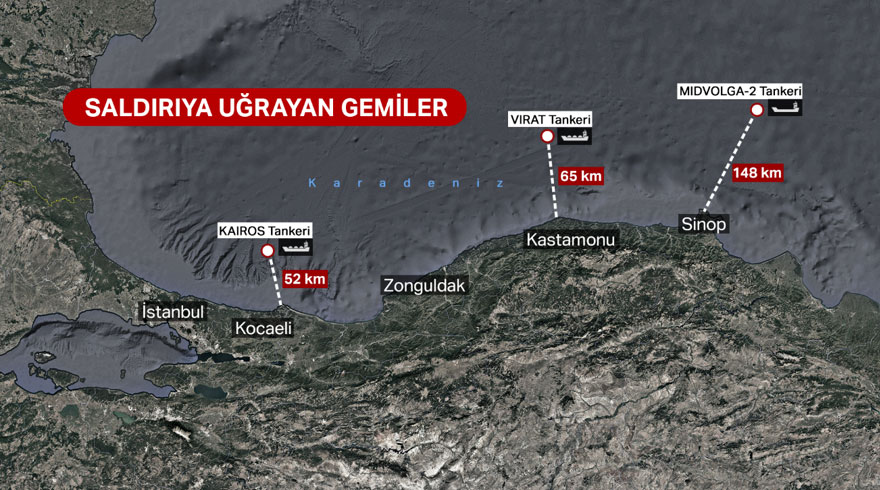 “KAIROS” isimli tanker de, Rusya’nın Novorossiysk Limanı’na giderken Kocaeli’nin Kandıra ilçesi açıklarında patlama yaşamış ve yangın çıkmıştı. Gemideki 25 mürettebat tahliye edilmiş, sağlık durumlarının iyi olduğu duyurulmuştu. Denizcilik Genel Müdürlüğü, Karadeniz’deki deniz trafiği ve güvenlik konularında dikkatli olunması çağrısında bulundu.