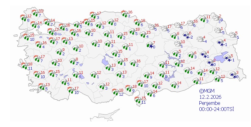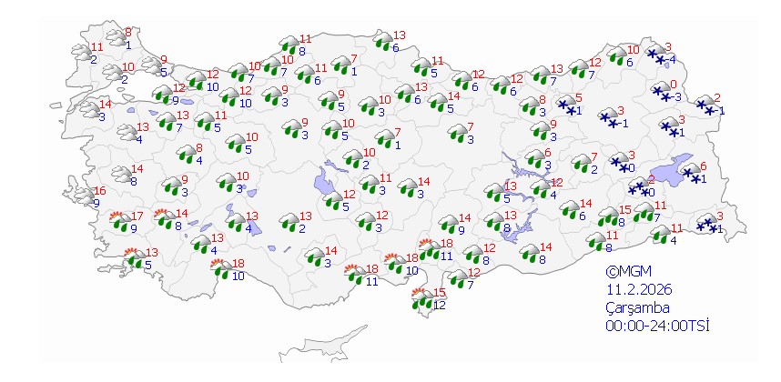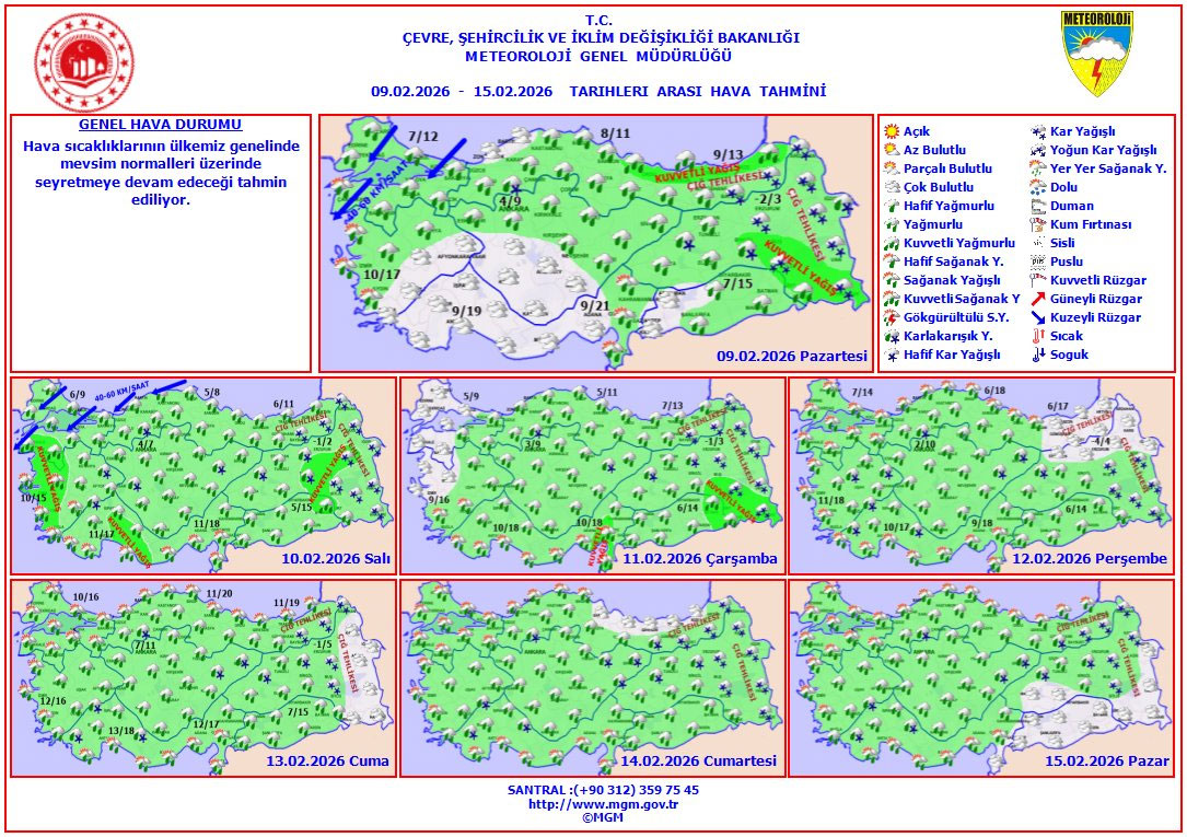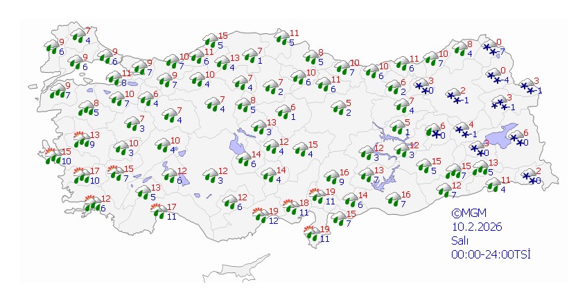 Marmara, Ege, Batı Akdeniz, İç ve Doğu Anadolu’nun kuzey ve doğusu ile Karadeniz ve Hatay kıyılarında aralıklı sağanak yağışların etkili olacağı tahmin ediliyor. MGM, pazartesiden itibaren yurdun tamamında sağanak ve kar yağışlarının görüleceğini açıkladı. Salı günü Ege ve Antalya çevrelerinde kuvvetli sağanak, Doğu ve Güneydoğu Anadolu’da ise kuvvetli kar yağışı bekleniyor.