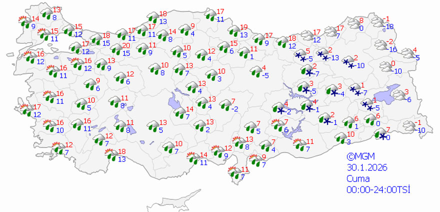 Meteoroloji Genel Müdürlüğü (MGM), Adana, Antalya, Aydın, Balıkesir, Burdur, Çanakkale, Giresun, Hatay, Mersin, İzmir, Kastamonu, Muğla, Ordu, Samsun, Sinop, Tokat ve Trabzon için sarı kodlu kuvvetli yağış ve fırtına uyarısı yaptı.