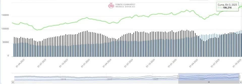 Buna göre, toplam rezervler 182 milyar 953 milyon dolardan 186 milyar 216 milyon dolara yükseldi. Böylece Merkez Bankası’nın rezervlerinde 3 milyar 263 milyon dolarlık artış kaydedildi.
