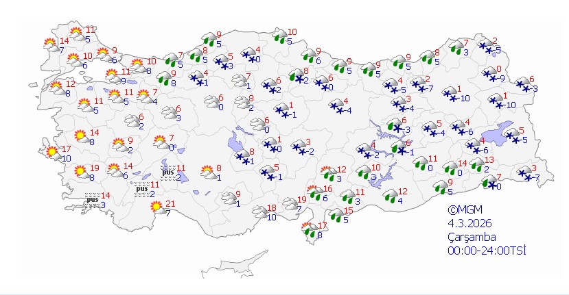 - Malatya: -2 / 4°C