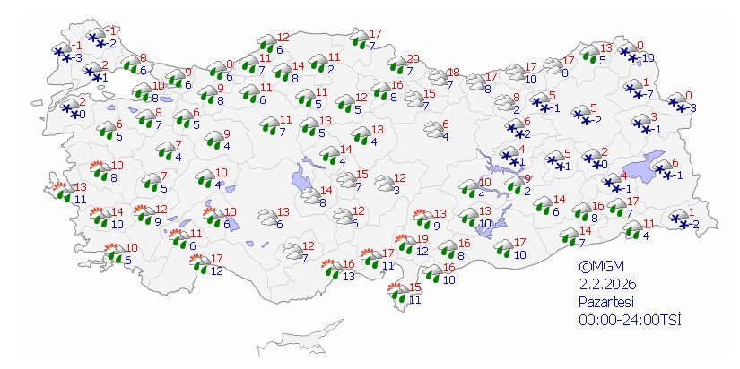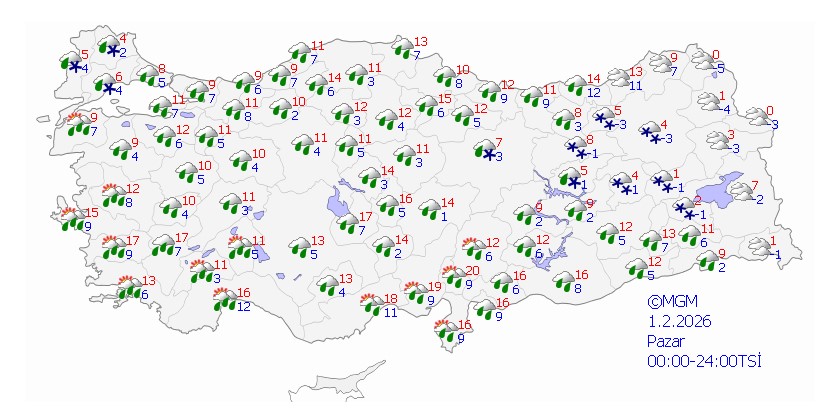 - 1 Şubat Pazar: 4-7°C