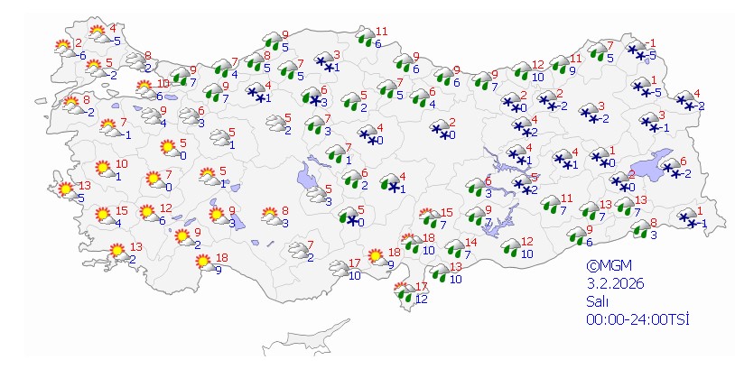 - Kar uyarısı: Adana, Bingöl, Diyarbakır, Elazığ, Adıyaman, Malatya, Kahramanmaraş, Batman, Tunceli