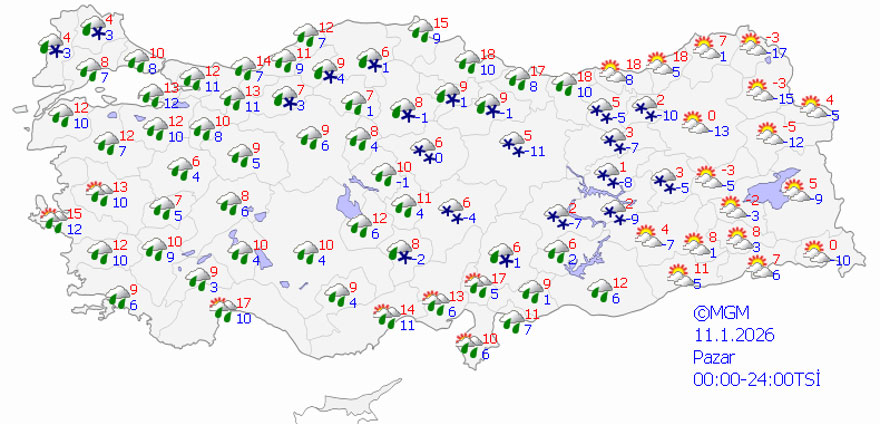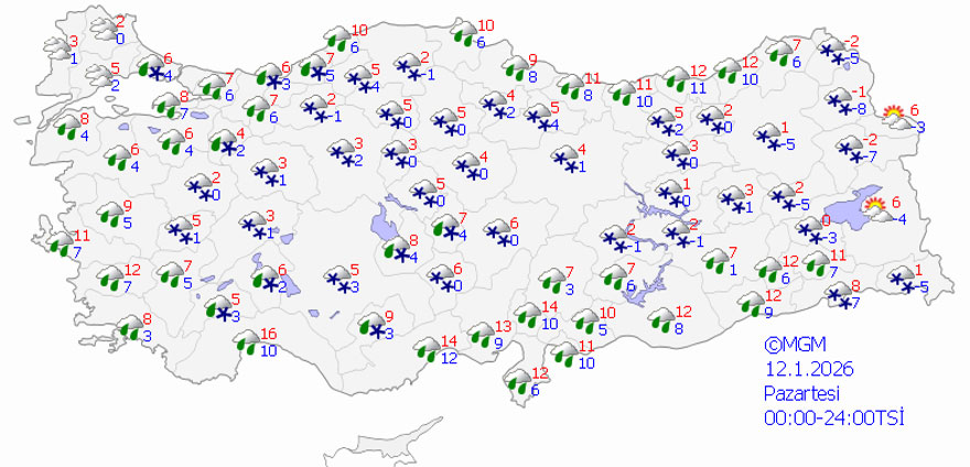 Meteoroloji Genel Müdürlüğü (MGM), 63 il için kuvvetli yağış, kar ve fırtına uyarısı yaptı. Uyarı yapılan iller arasında İstanbul, Ankara, İzmir, Bursa, Antalya, Trabzon, Erzurum ve birçok batı ve doğu ili yer alıyor.