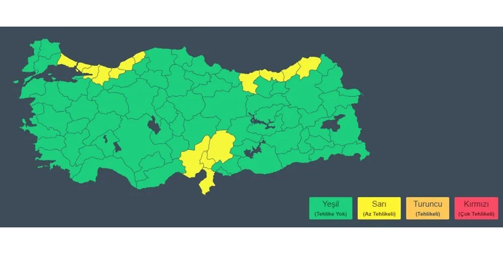 Adana, Artvin, Giresun, Hatay, İstanbul, Kocaeli, Kahramanmaraş, Rize, Sakarya, Trabzon, Zonguldak, Bartın, Osmaniye ve Düzce için verilen sarı kod, hava durumunun potansiyel tehlike içerdiğini belirtiyor. Yetkililer, meteorolojik şartlardan etkilenebilecek tüm faaliyetlerde dikkatli olunmasını istiyor.