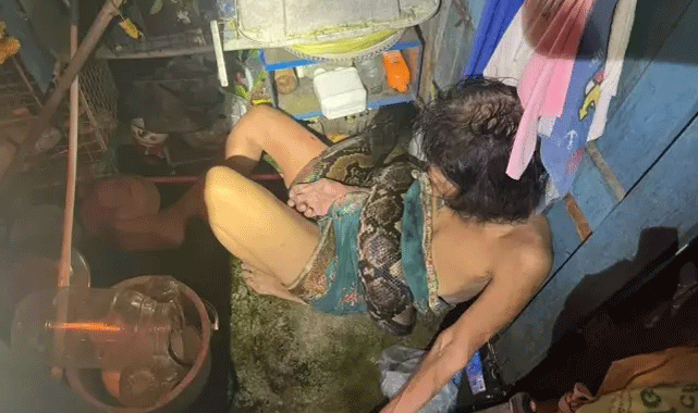 Tayland’da 64 yaşındaki Arrom Arunroj, evinin dış mutfak bölümünde bulaşık yıkarken 4 metrelik bir pitonun saldırısına uğradı. Başta bir kertenkele sandığı dev yılan, Arrom’un iki saat boyunca yardım için bağırmasına neden oldu. Komşusu sesini duyup polisi aradı, ancak yardım geldiğinde Arrom, pitonla dört saattir mücadele ediyordu. Polis, kadını kurtarmak için büyük çaba sarf etti.Olay sonrası hastaneye kaldırılan Arrom, “Yılan beni bırakmıyordu, ölmemi bekliyordu ki beni yesin. Sadece dua ettim ve hayatta kalmaya çalıştım,” dedi. Polis yetkilisi, “Yaşlı kadını 20 kilodan ağır bir piton sıkıyordu. Onu kurtarmak 30 dakikadan fazla sürdü,” açıklamasında bulundu.