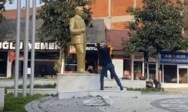Sakarya’da bir kişi, baltayla Atatürk büstüne saldırdıktan sonra polis ekipleri tarafından gözaltına alındı. Sosyal medyada hızla yayılan görüntüler tepkilere neden oldu. Şüphelinin şizofreni hastası olduğu belirtildi.Elindeki balta ile büstü parçalamaya çalışan o şahsı ise çevredeki vatandaşlar kaydetti.