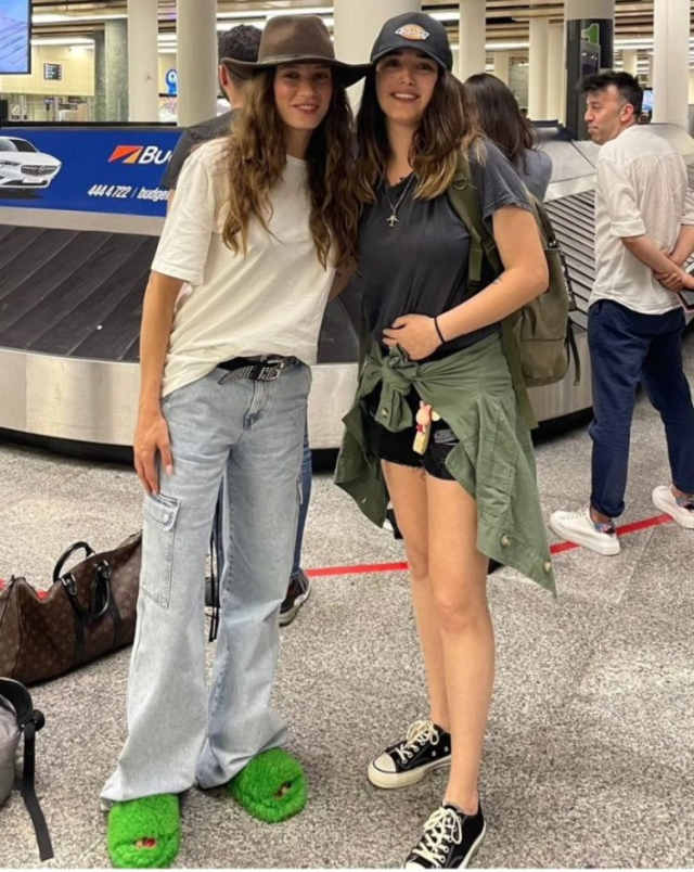 Havalimanında karşılaştığı hayranlarını kırmayarak fotoğraf çektiren Serenay Sarıkaya, sıcak havaya rağmen tercih ettiği yeşil tüylü terlikleriyle dikkat çekti. Oyuncu terlikleriyle kısa sürede alay konusu olurken “Kopartılmış iplerin birleşimi gibi” yorumları yapıldı. Sarıkaya’nın dünyaca ünlü bir markaya ait olduğu öğrenilen yeşil terliklerinin fiyatı ise 33 bin 795 TL.
