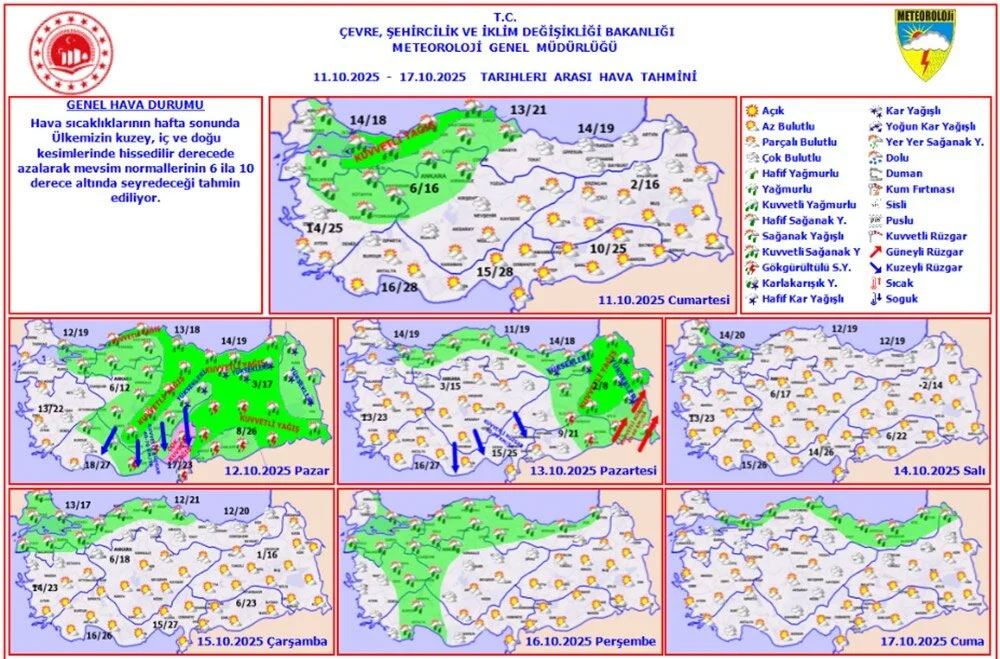 NTV Meteoroloji Uzmanı Dilek Çalışkan, hafta sonunun oldukça hareketli geçeceğini belirtti. Karadeniz üzerinden soğuk hava girişi yaşanacağını ve havanın Aralık-Ocak ayları gibi hissedileceğini söyledi. Rüzgarın etkisiyle Ege bölgesinde bile hissedilen soğuk artacak.Batı Karadeniz’de yağışların şiddetli olacağı, Kastamonu, Bolu ve Kartalkaya gibi yüksek rakımlı yerlerde kar yağışı beklendiği belirtildi. Bu soğuk ve yağışlı hava Sivas, Kayseri, Erzurum ve Gümüşhane gibi yüksek kesimlere de ulaşacak. Pazar günü Doğu Karadeniz’de su baskınları yaşanabilir. Adana ve Hatay çevresinde de yağış etkili olacak.