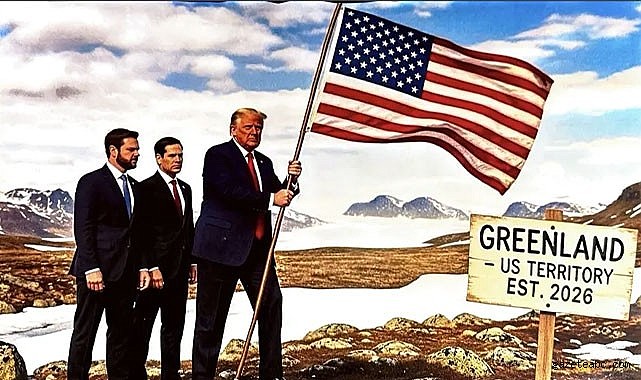 ABD Başkanı Trump, paylaşımlarına devam ederek, ABD bayrağı taşıdığı, Başkan Yardımcısı JD Vance ve Dışişleri Bakanı Marco Rubio’nun önünde “Grönland. ABD toprağı” yazılı bir tabelanın yanından yürüdüğü bir görseli de sosyal medyada paylaştı.